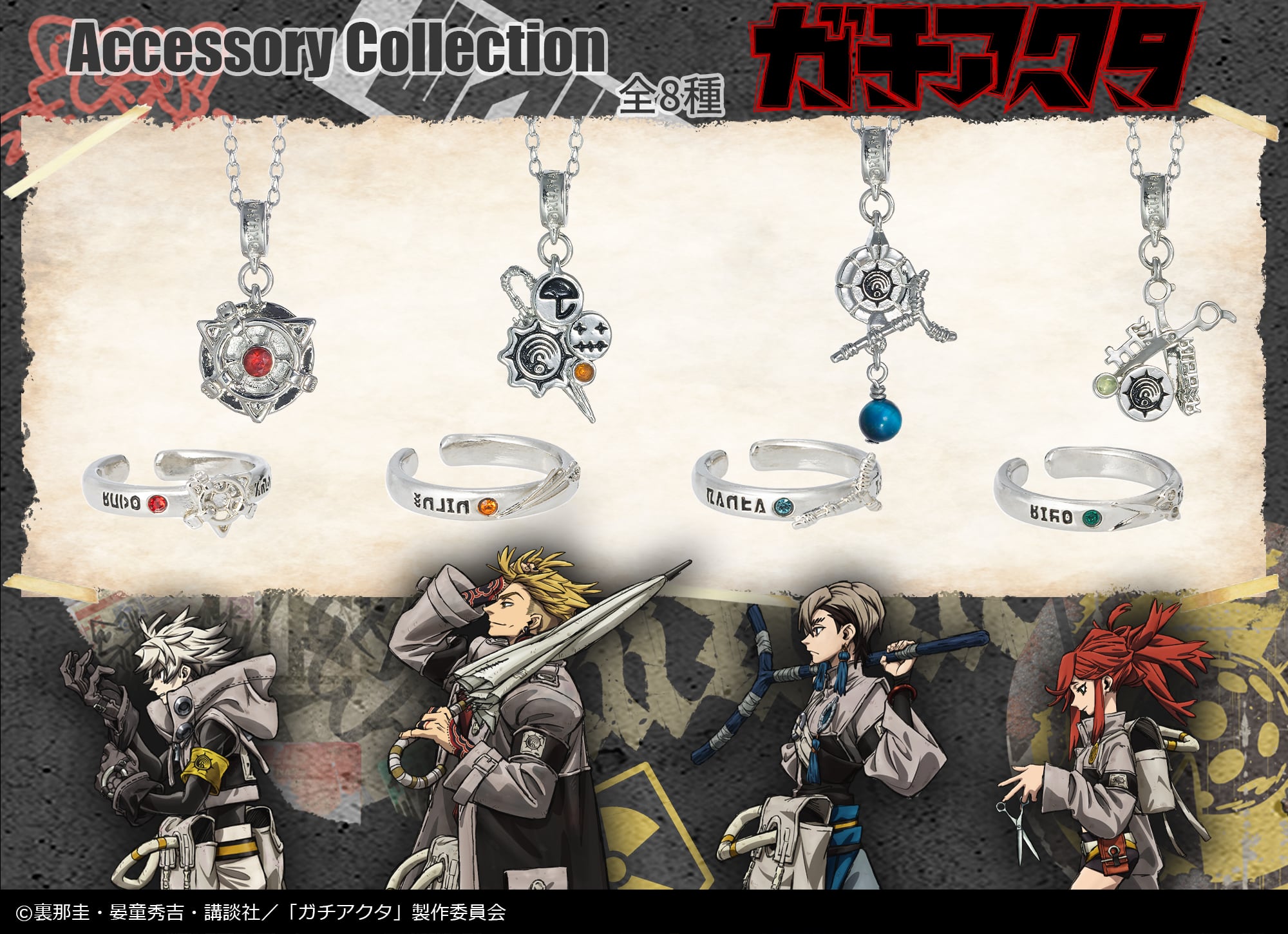 ■返品・交換につきまして 商品に欠陥がある場合に限り、返品・交換の対応をさせて頂きます。 受け取り後14日以内にご連絡くださいますようお願い申し上げます。 ■商品詳細 TVアニメ『ガチアクタ』より、エンジンをイメージしたアクセサリー。 この商品は以下の2種セットです。 ・天然石ネックレス:エンジン ・イヤカフリング:エンジン ■MADE IN JAPAN ■素材 ネックレス:ピューター、真鍮、天然石 イヤカフリング:ピューター、ガラス ■サイズ ネックレストップ:17mm チェーン:45cm リングサイズ:約10号