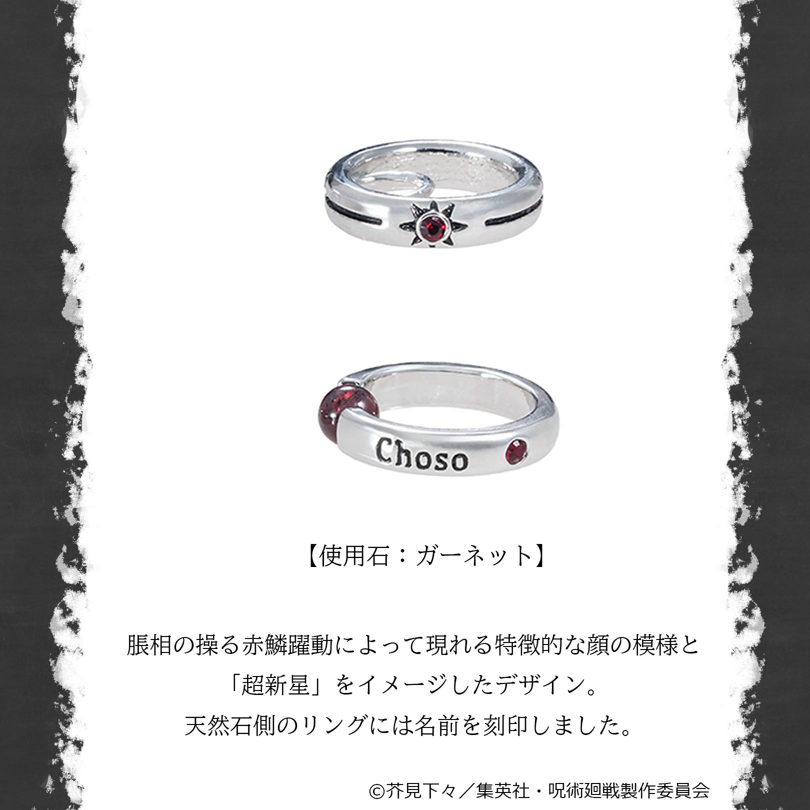 天然石はガーネットを使用しています。天然石側のリングには”Choso”の名前を刻印。