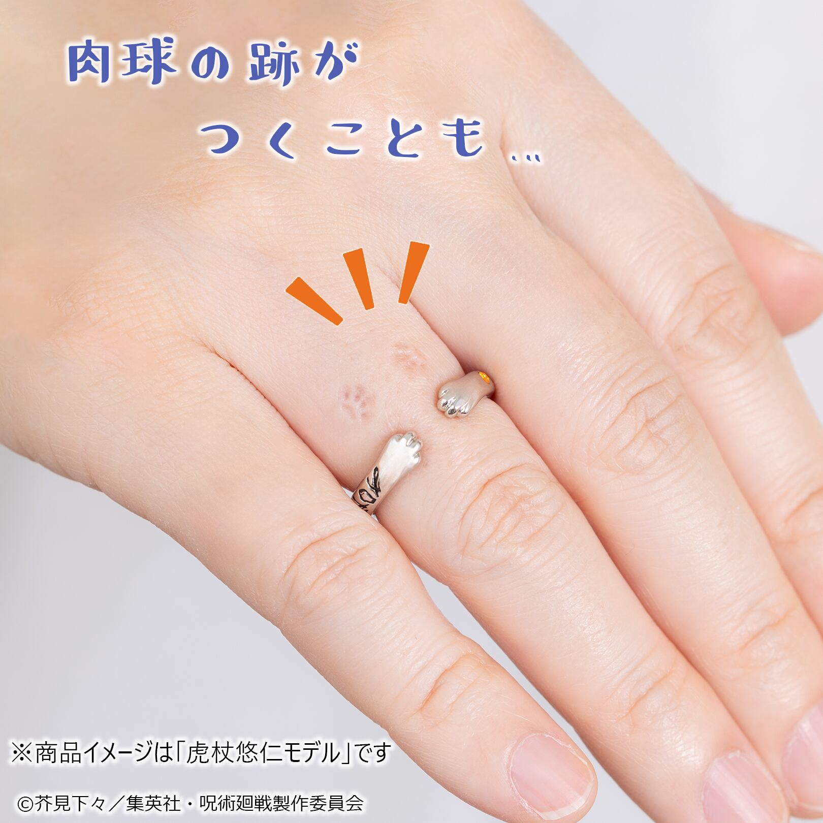 立体的な猫の手に虎杖悠仁の拳と「黒閃」をイメージしたデザインを刻印しました。