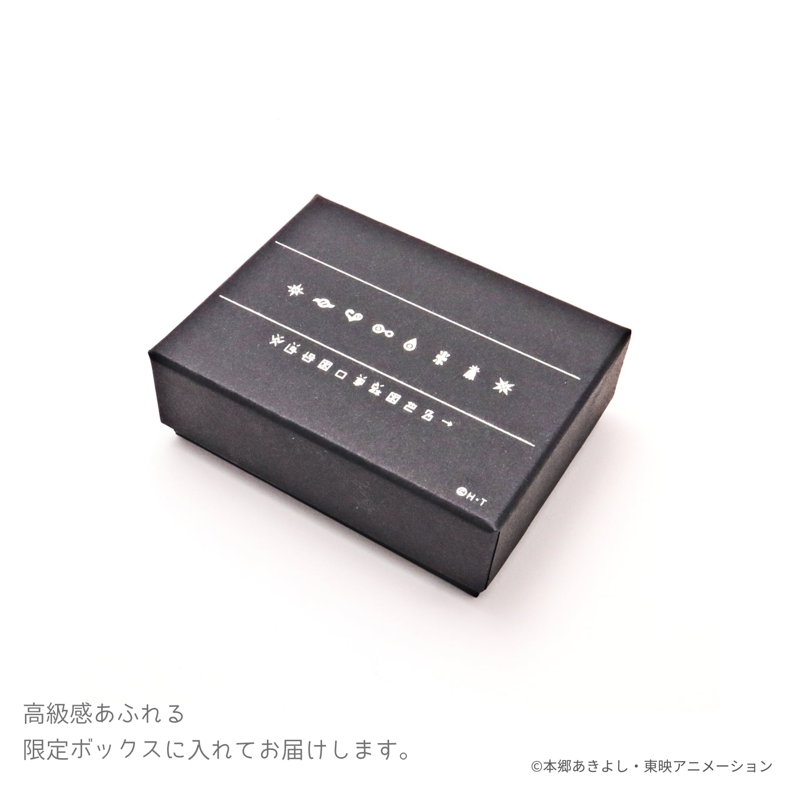 8つの紋章と、デジ文字で「デジモンアドベンチャー」が箔押しされた高級感あふれるボックスに入れてお届け致します。
