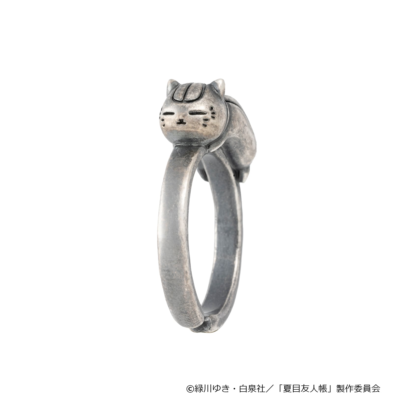 ニャンコ先生の癒しのフォルムをどの角度から見ても感じられる、立体デザインのリング。